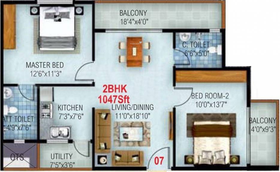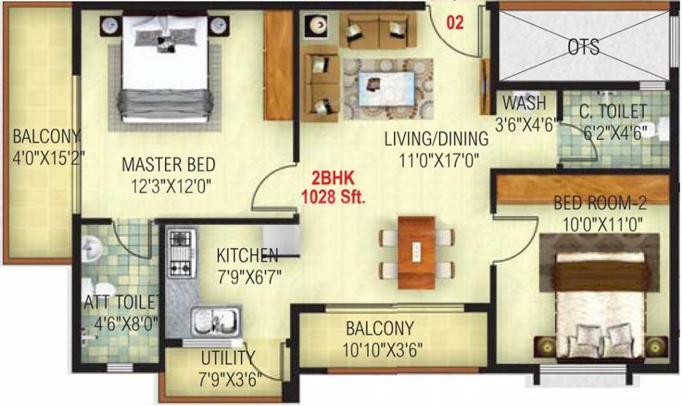 Typical Floor Plan (2 BHK)